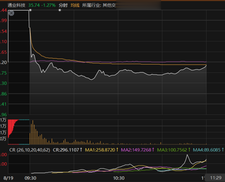 不过,8月19日,通业科技股价高开低走。当日开盘,通业科技大涨13%,不过随后大幅快速走弱,至午间收盘跌1.27%场外配资,报35.74元/股。