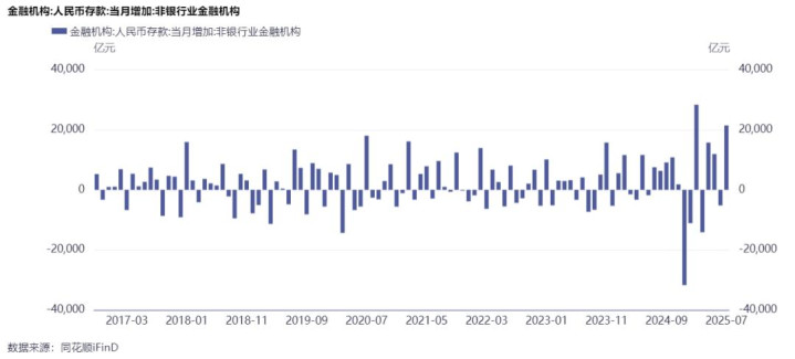 而我们最近看到的数据,7月非银存款增加2.14万亿元,同比多增1.39万亿元,很多人认为这是存款入市的积极信号。但,这一点恐怕还不够,因为权益和债市的变化,都会影响到非银存款的变化,比如去年12月因为债市调整,非银存款单月流出3.1万亿。