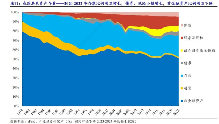更重要的是,这将会是一种长期趋势。居民财富一般只有三个大的蓄水池,其一是债券(包括定期存款),其二是楼市,其三是股票。由于中国城镇化基本结束,且人口呈现长期下滑的趋势,房地产已经没有希望了,只剩下两个大的蓄水池,也就是债券和股票。