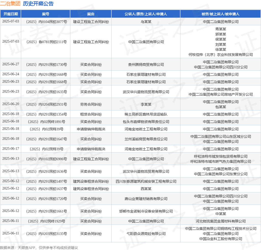 本站消息配资新闻网,根据天眼查APP显示,近日公布了一则中国二冶集团有限公司作为原告/上诉人的开庭公告,详细内容如下: